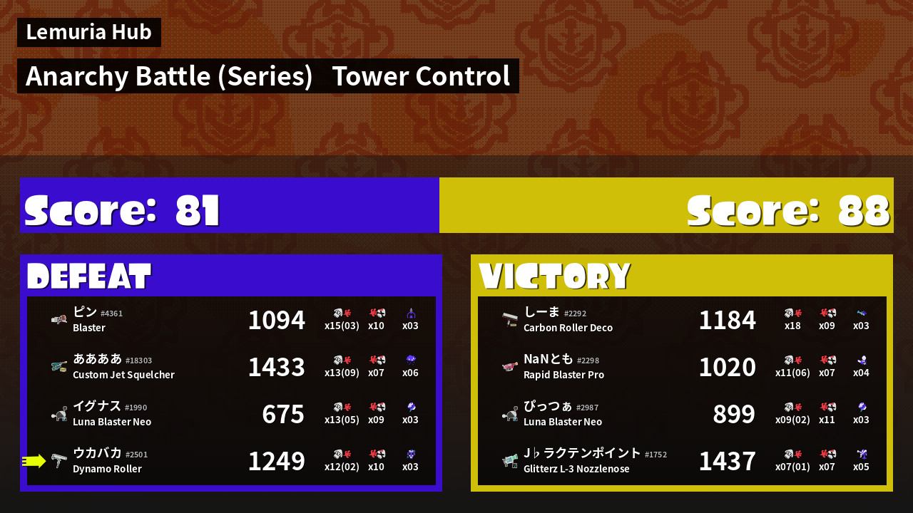 | Mode | Tower Control - Anarchy Battle (Series) | ||