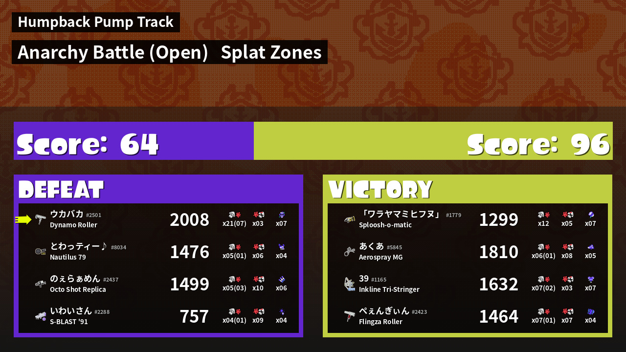 | Mode | Splat Zones - Anarchy Battle (Open) | ||