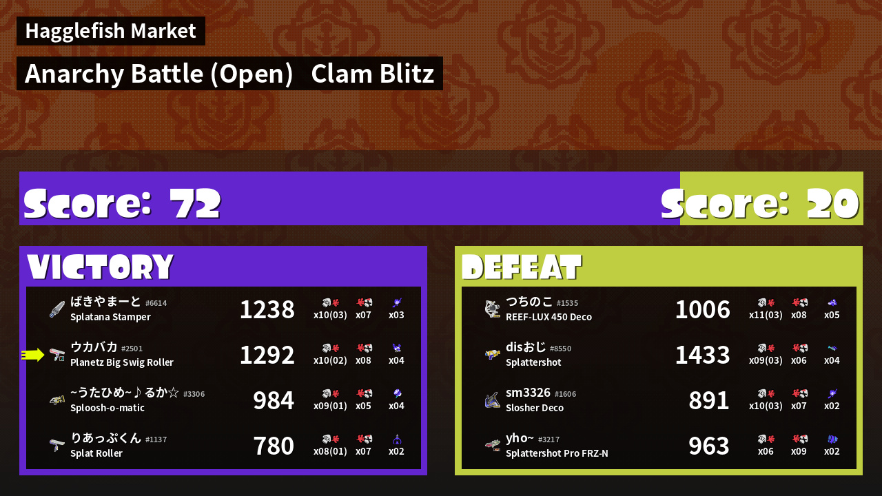 | Mode |  Clam Blitz -  Anarchy Battle (Open) | ||