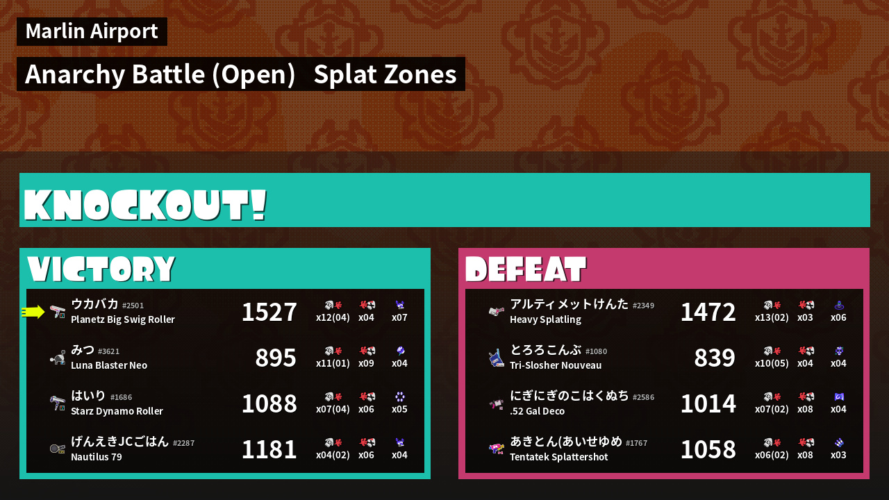 | Mode | Splat Zones - Anarchy Battle (Open) | ||