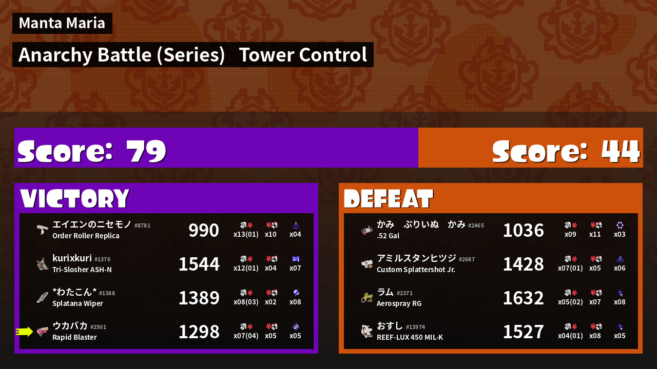 | Medals | #1 Splat Assister #1 Tower Stopper First Splat! | ||