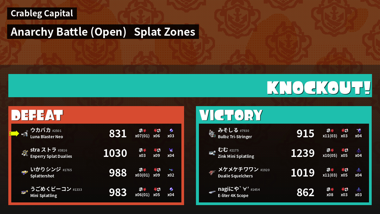 | Mode | Splat Zones - Anarchy Battle (Open) | ||