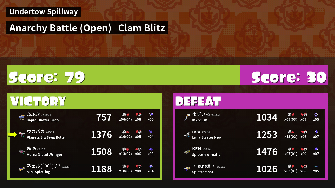 | Mode | Clam Blitz - Anarchy Battle (Open) | ||