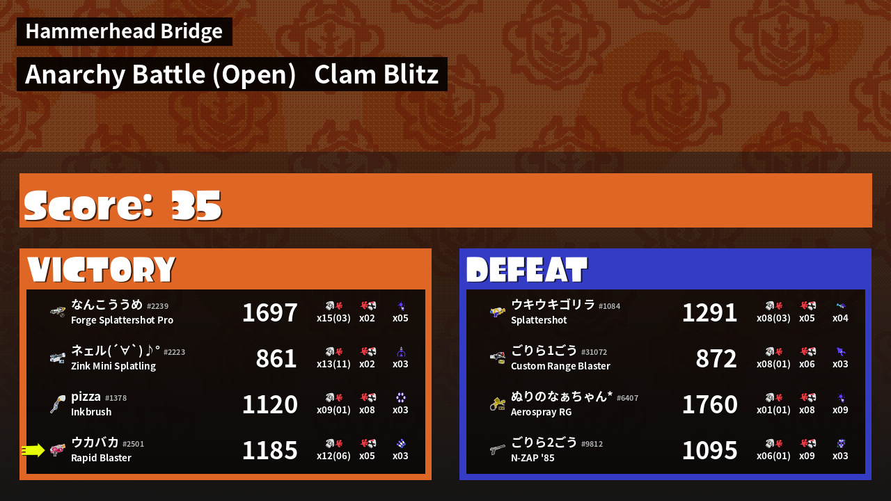 | Mode | Clam Blitz - Anarchy Battle (Open) | ||