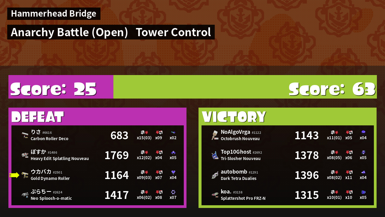 | Mode | Tower Control - Anarchy Battle (Open) | ||