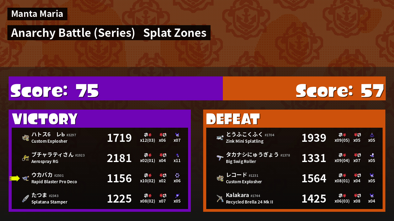 | Mode | Splat Zones - Anarchy Battle (Series) | ||