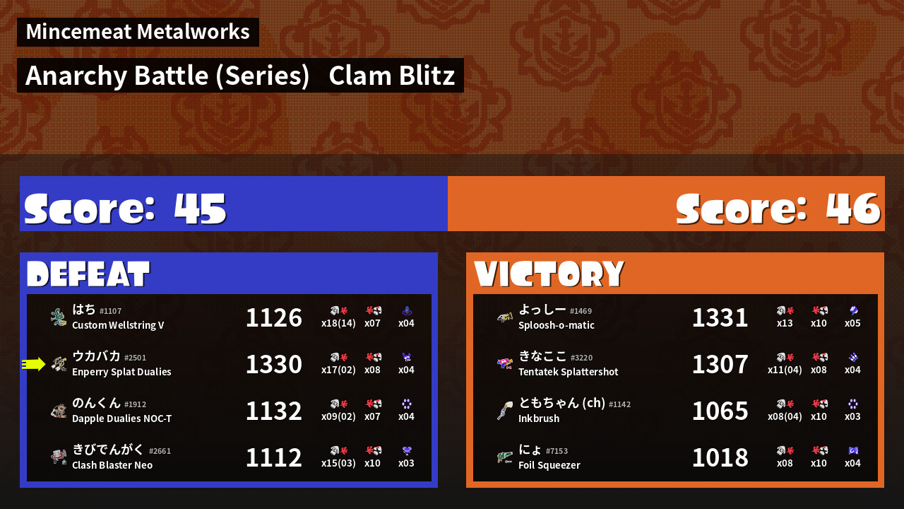 Name | Weapon | Inked | ![]() |