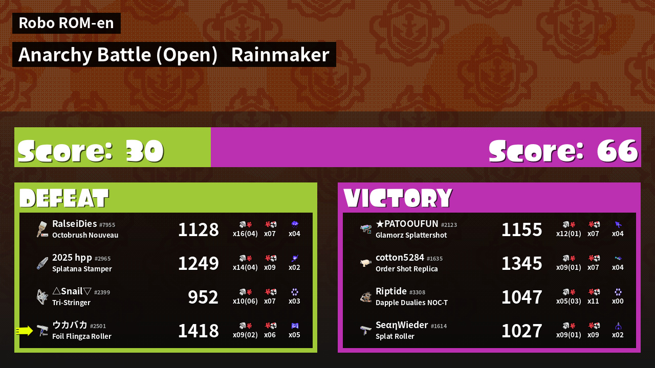 Results of 大乌's Battle