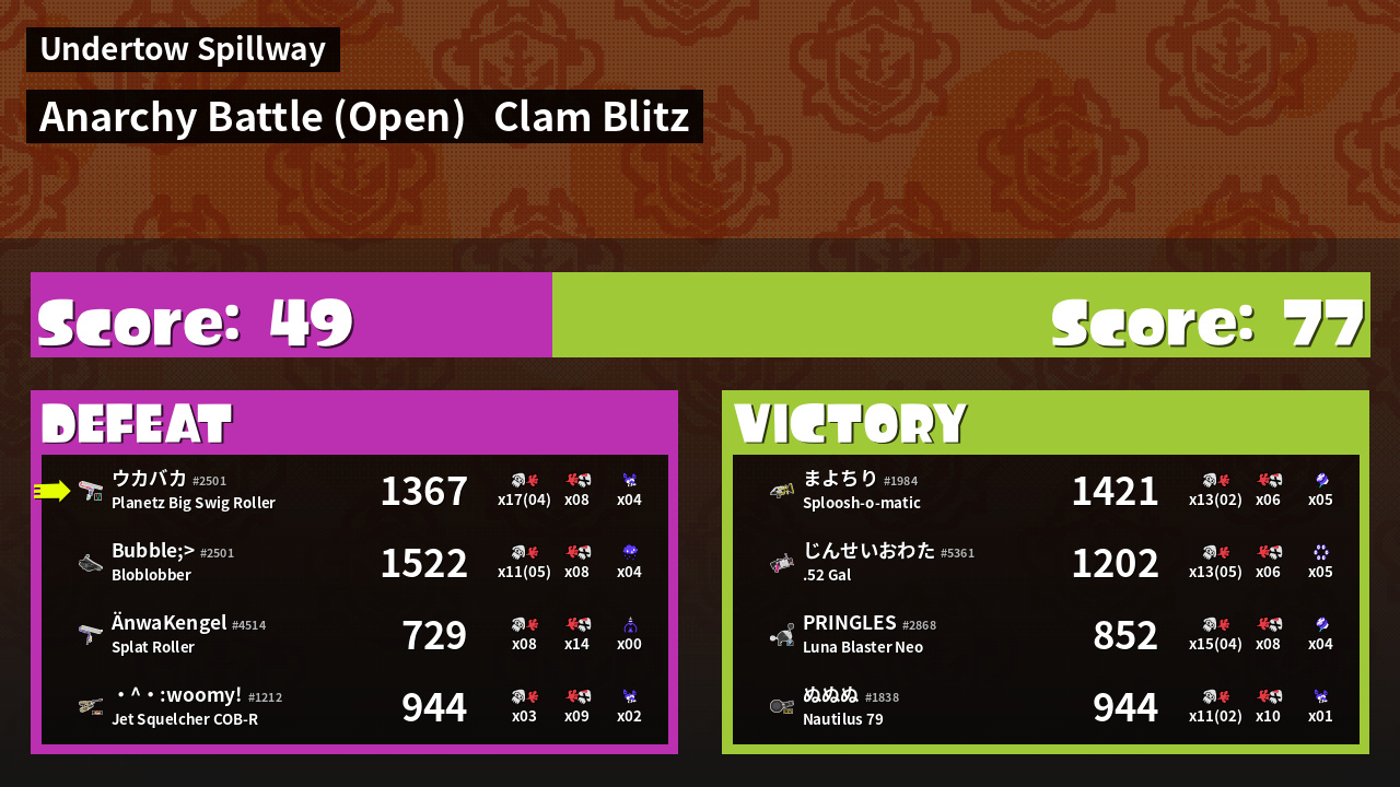 | Mode | Clam Blitz - Anarchy Battle (Open) | ||