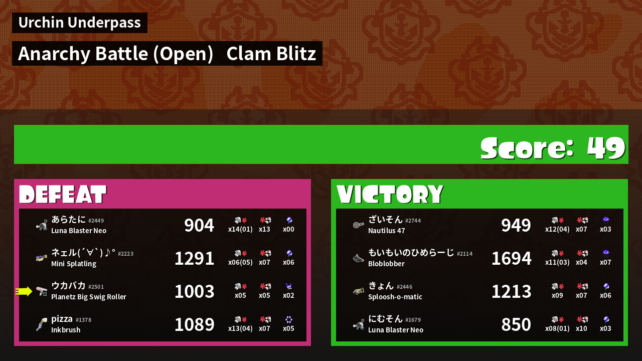 | Mode | Clam Blitz - Anarchy Battle (Open) | ||
