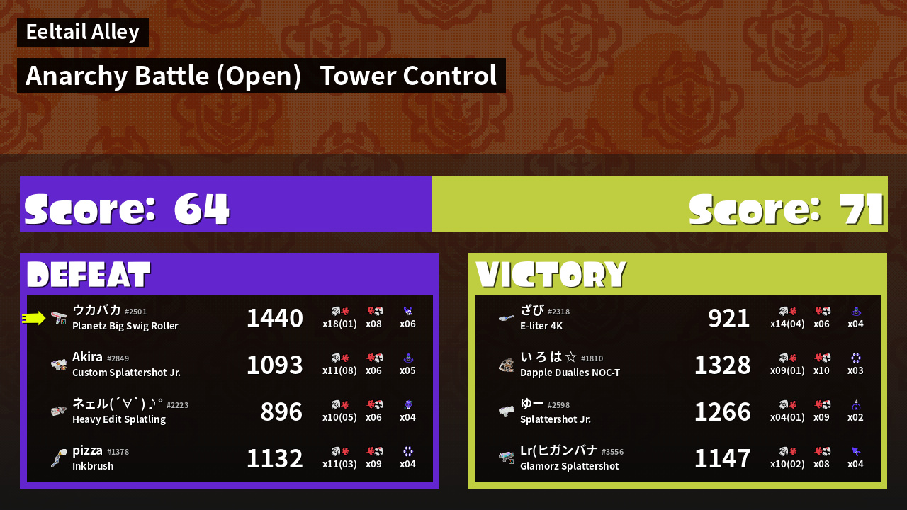 | Mode | Tower Control - Anarchy Battle (Open) | ||