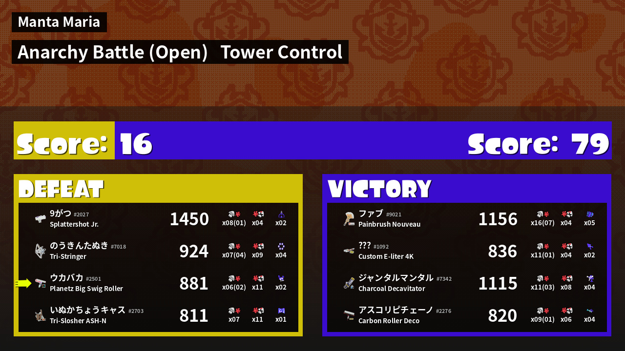 | Mode | Tower Control - Anarchy Battle (Open) | ||