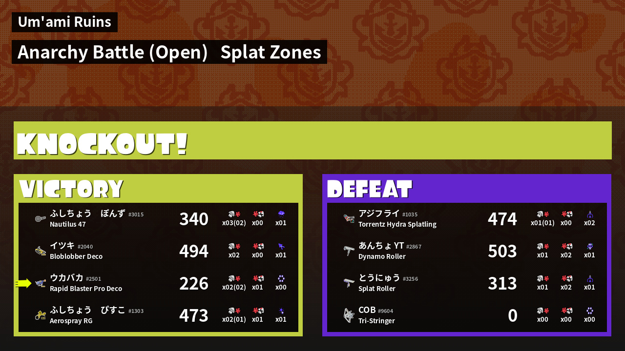 | Mode | Splat Zones - Anarchy Battle (Open) | ||
