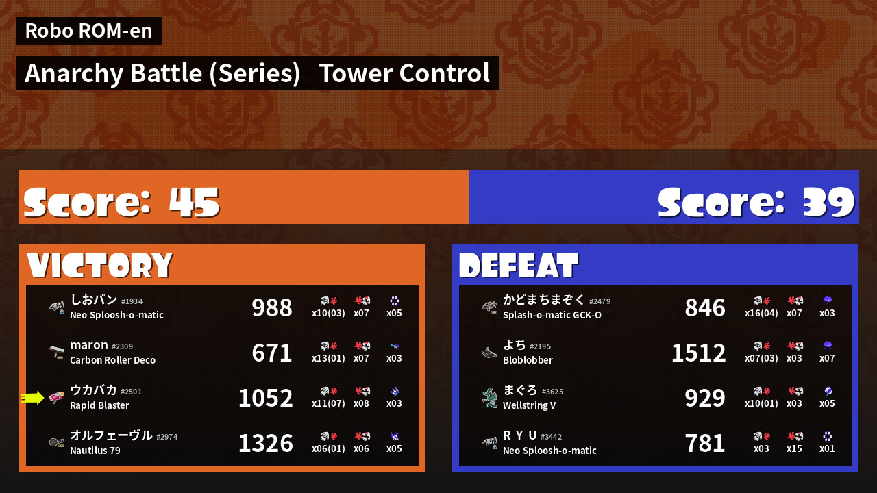 | Medals | #1 Splat Assister #1 Tower Stopper #1 Ink Consumer | ||
