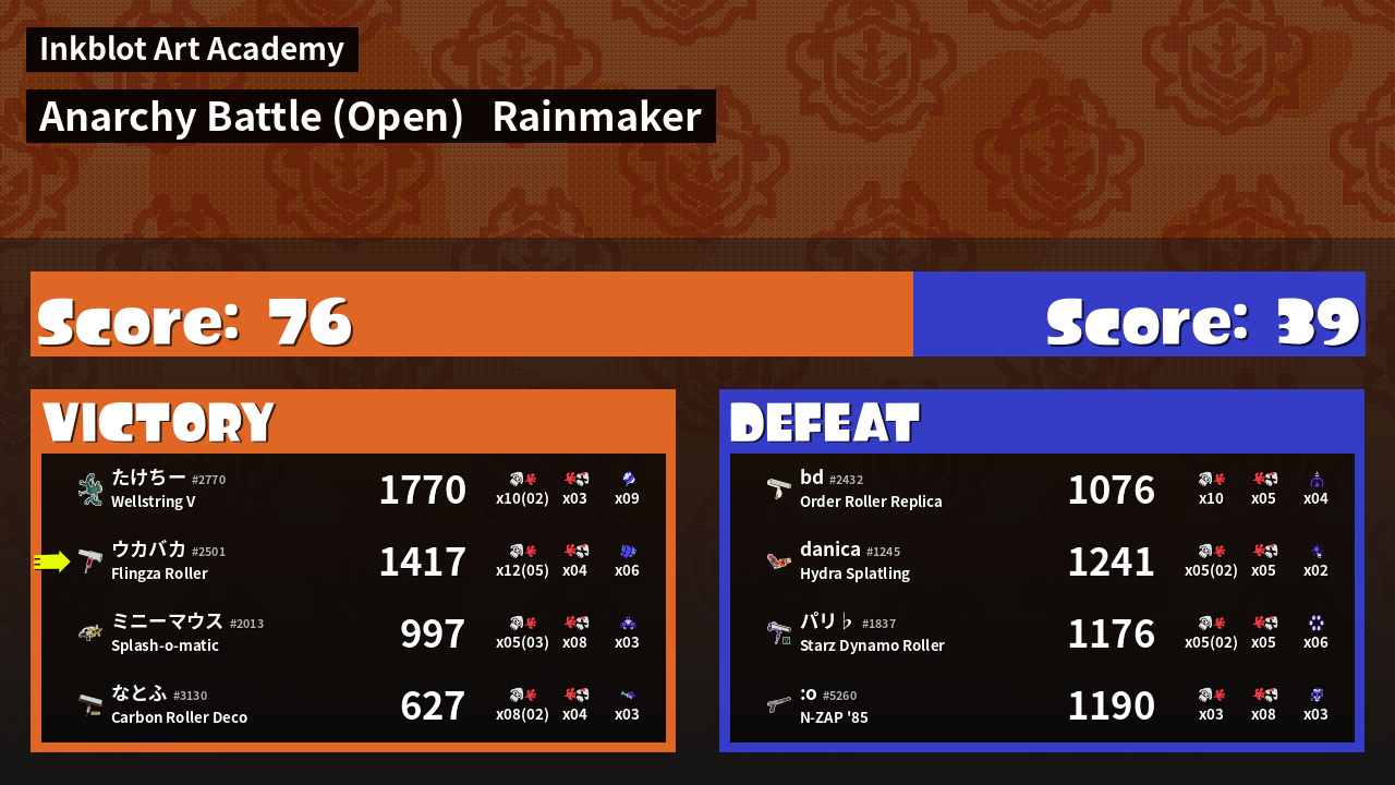 Name | Weapon | Inked | ![]() |