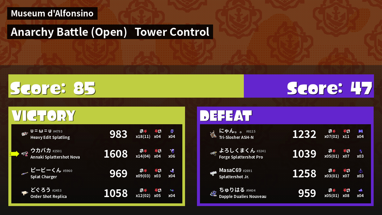 | Mode | Tower Control - Anarchy Battle (Open) | ||