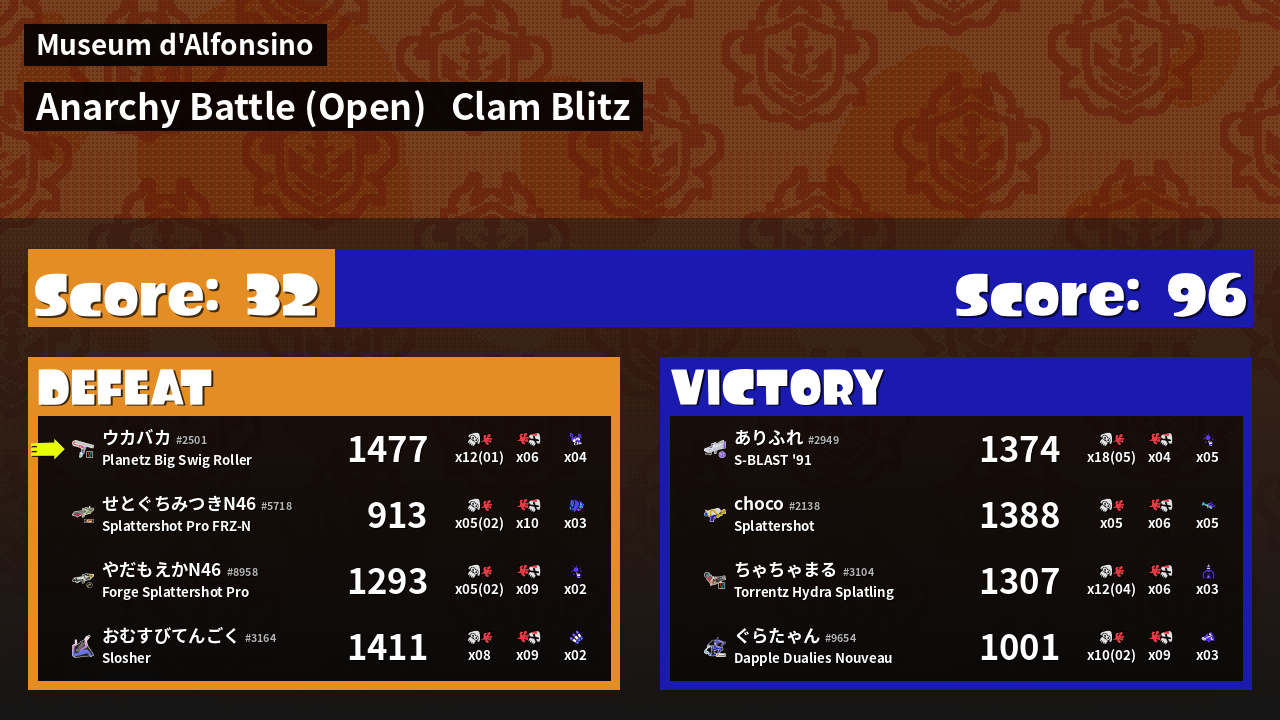 | Mode | Clam Blitz - Anarchy Battle (Open) | ||