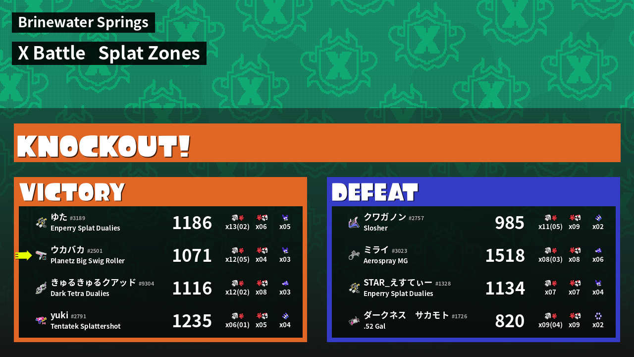| Mode | Splat Zones - X Battle | ||