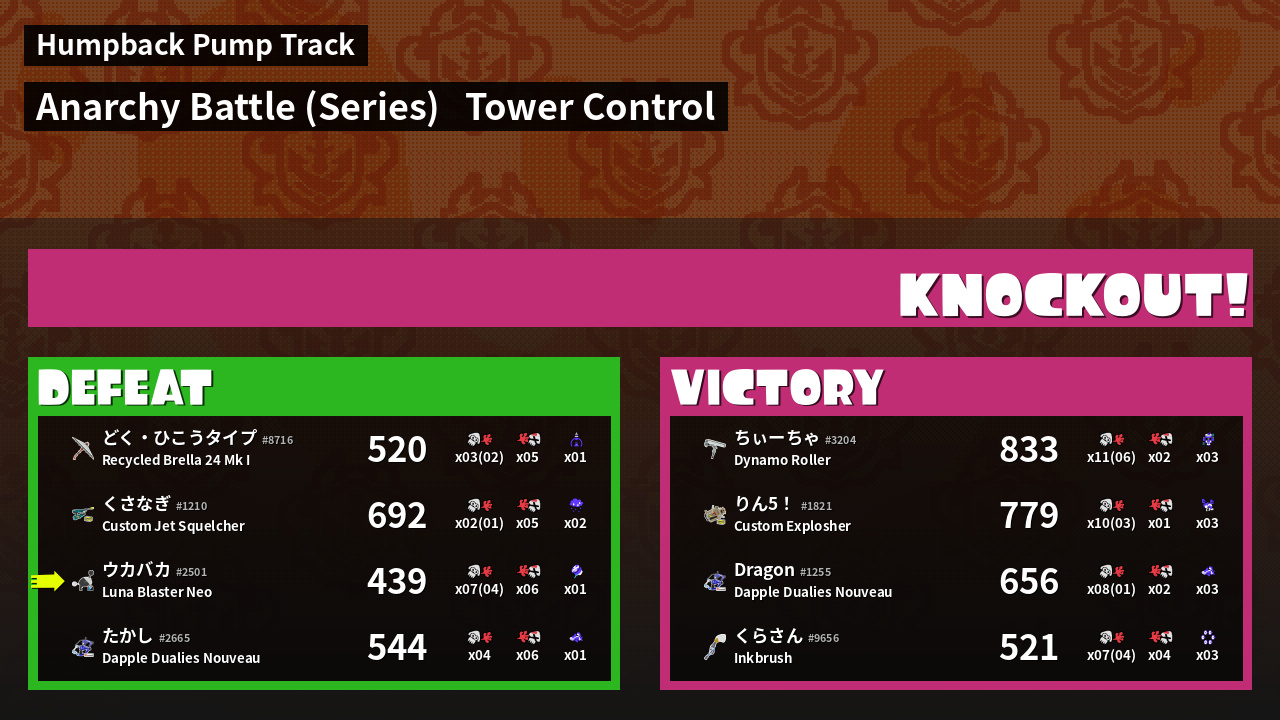| Medals | #1 Overall Splatter #1 Splat Assister #1 Tower Stopper | ||