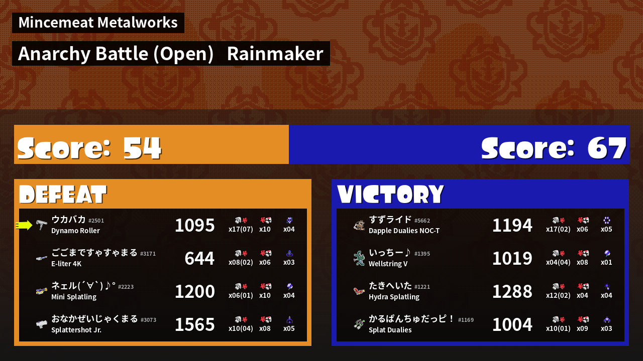 | Mode | Rainmaker - Anarchy Battle (Open) | ||