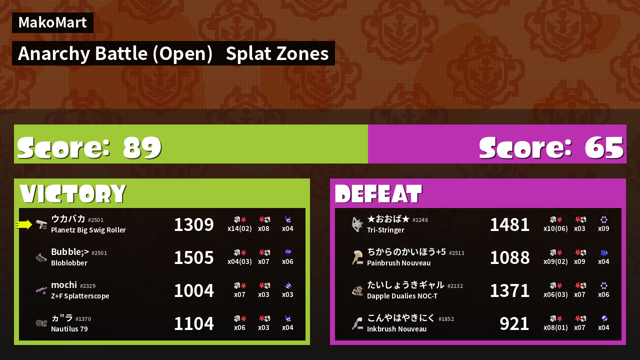 | Mode | Splat Zones - Anarchy Battle (Open) | ||