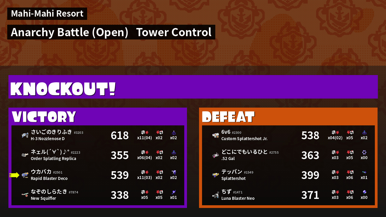 | Mode | Tower Control - Anarchy Battle (Open) | ||