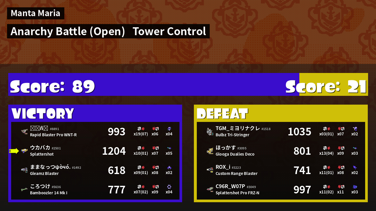 Name | Weapon | Inked | ![]() |