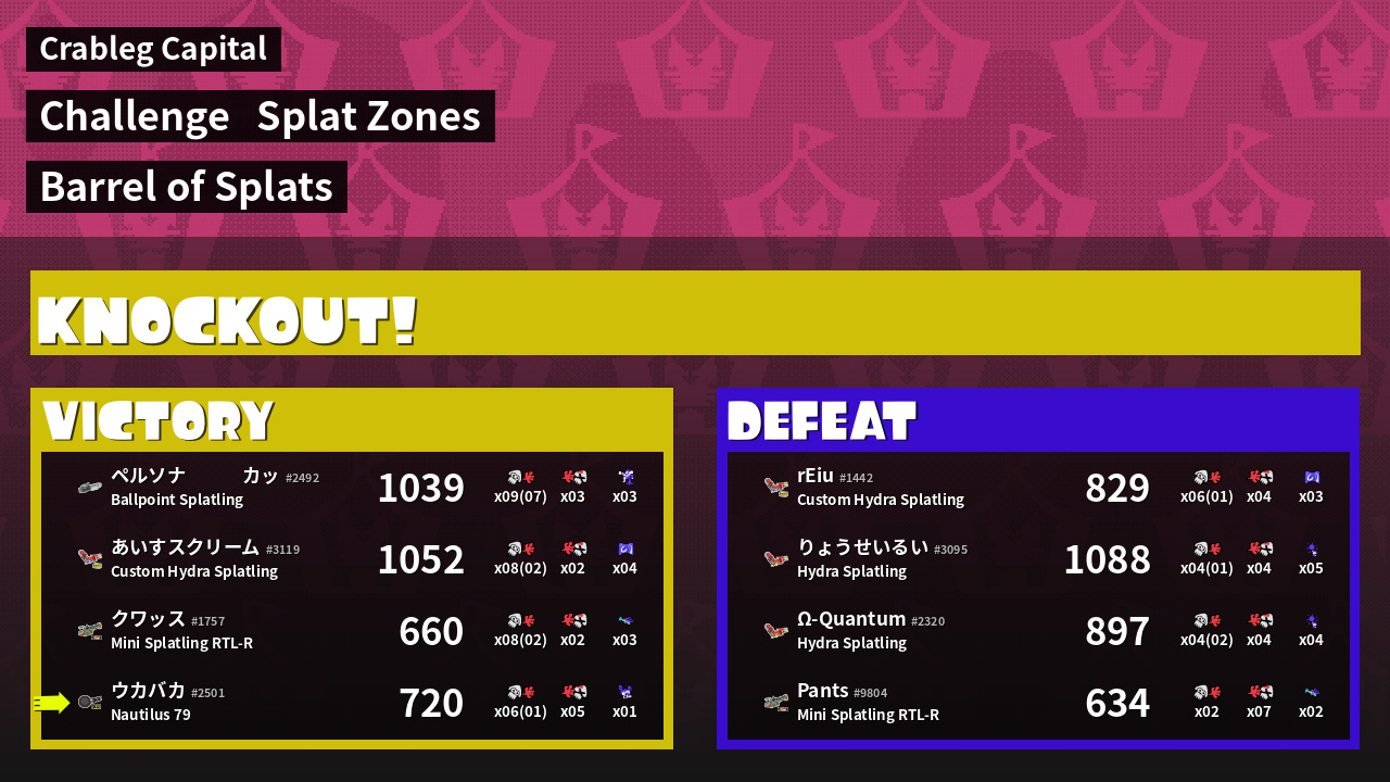 Challenge | Barrel of Splats Muster as much firepower as you can<br />in this battle of the splatlings! | ||