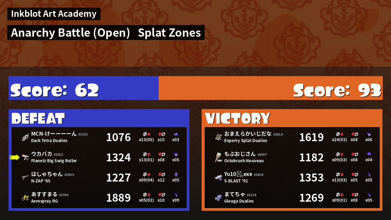 | Mode | Splat Zones - Anarchy Battle (Open) | ||