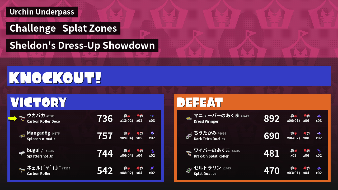 | Medals | #1 Overall Splatter #1 Splat Zone Guard #1 Popular Target | ||