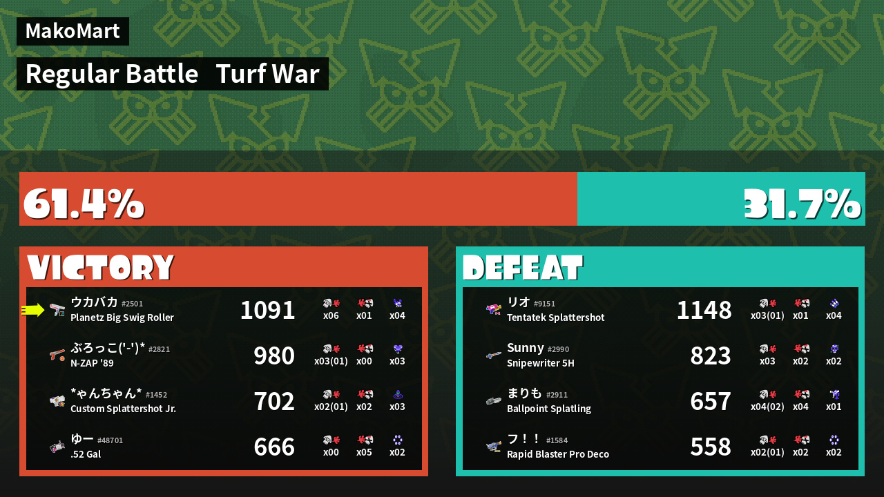 Kills / Deaths | 6 + 0 / 1 > Kill Ratio: 6.00 | ||