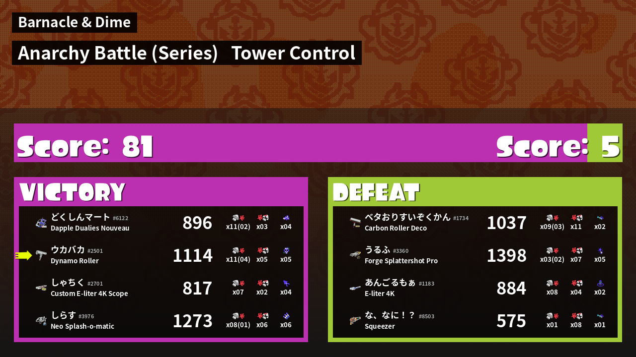 | Mode | Tower Control - Anarchy Battle (Series) | ||