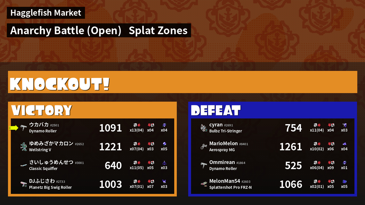 | Mode | Splat Zones - Anarchy Battle (Open) | ||