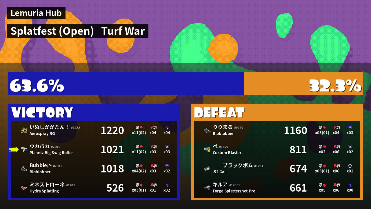 | Medals | #1 Overall Splatter #1 Popular Target #1 Enemy-Base Inker | ||