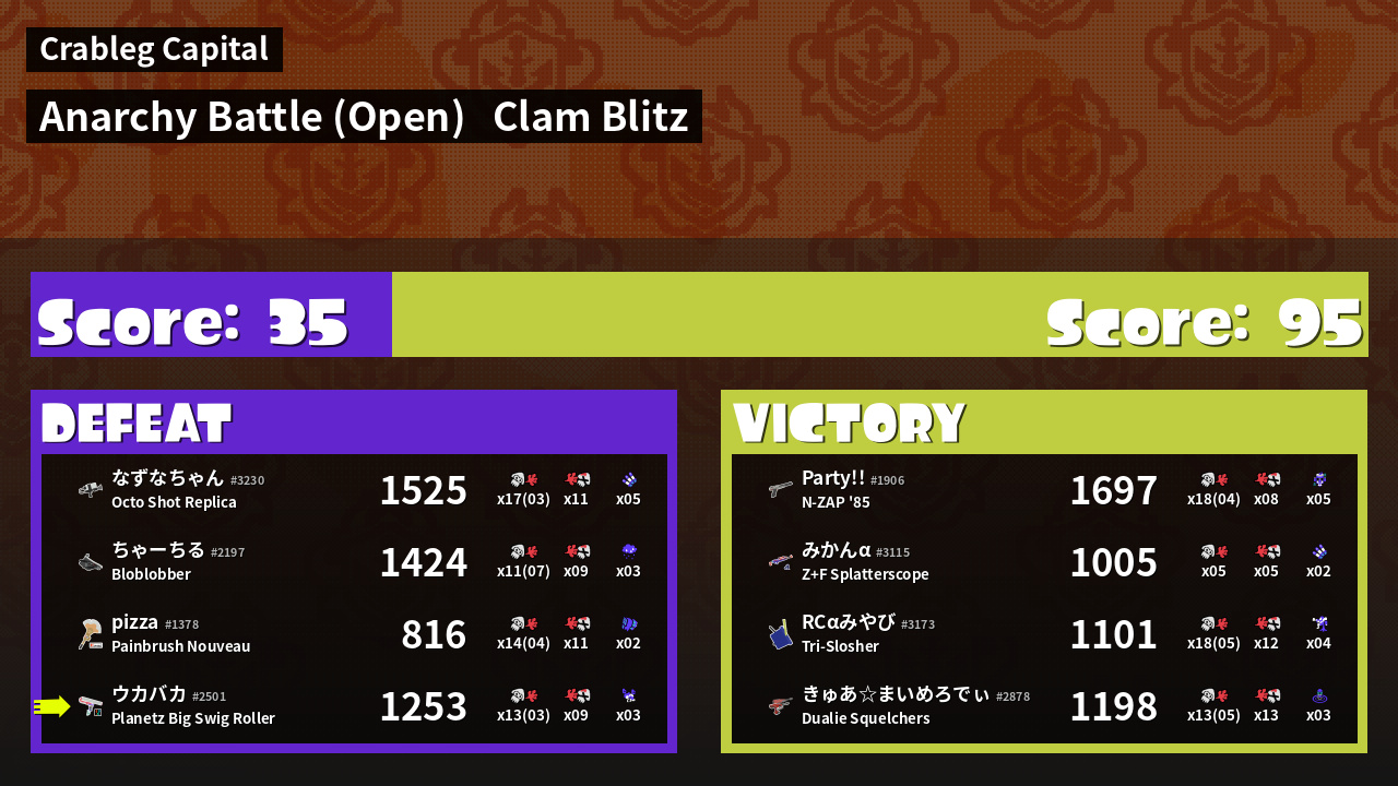 | Mode | Clam Blitz - Anarchy Battle (Open) | ||