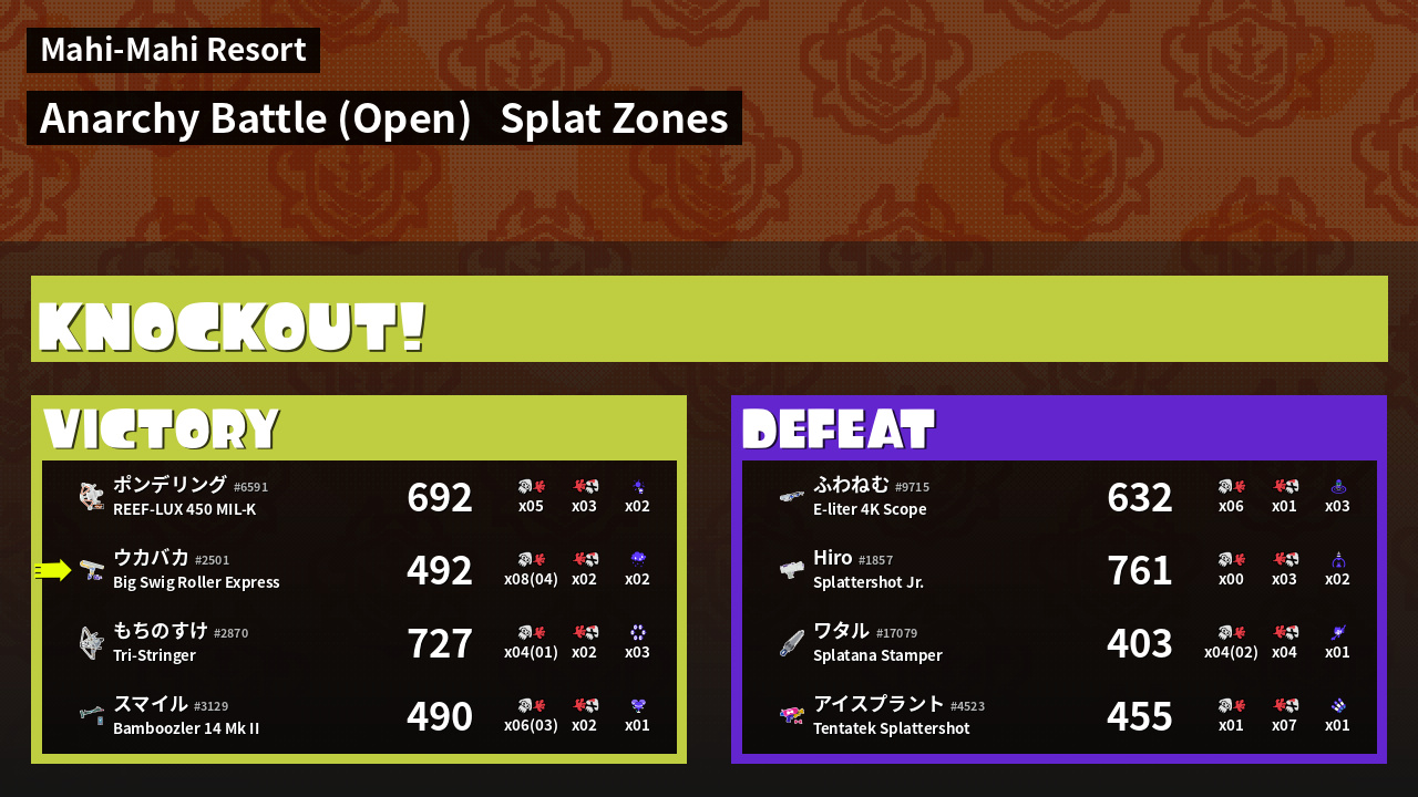 | Mode | Splat Zones - Anarchy Battle (Open) | ||