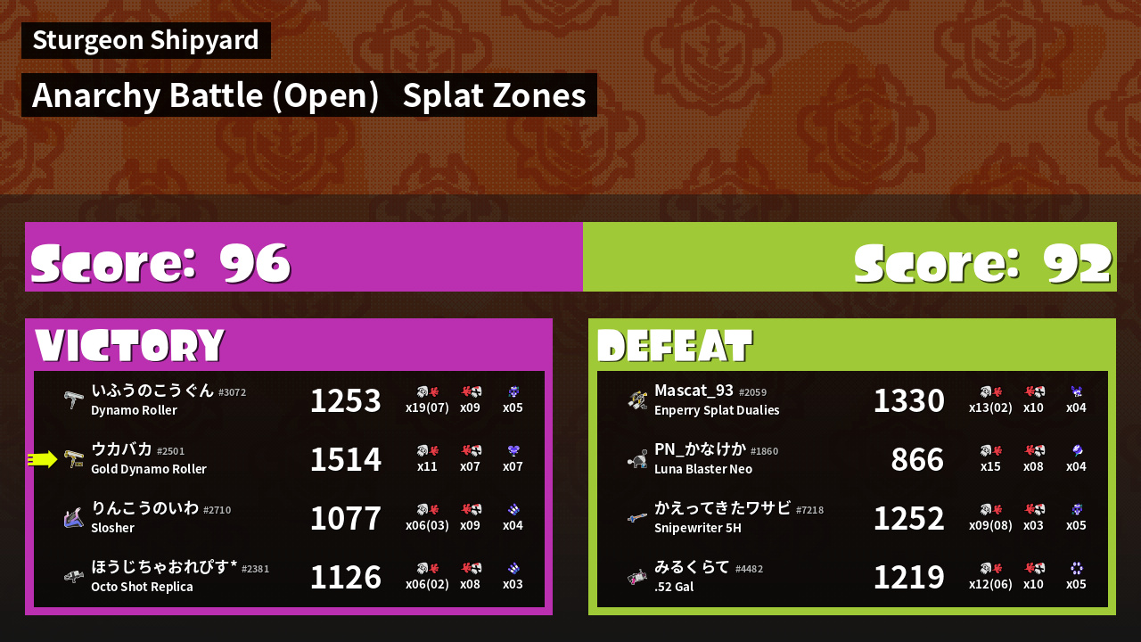 | Mode | Splat Zones - Anarchy Battle (Open) | ||