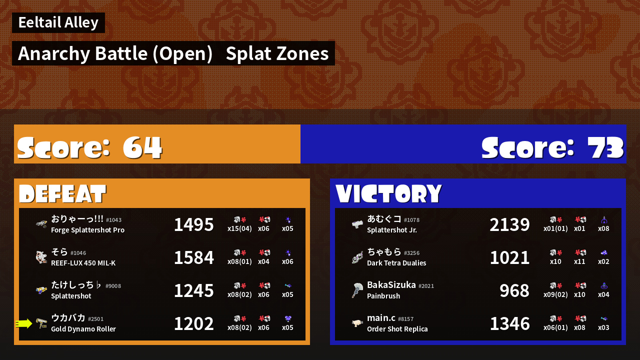 | Mode | Splat Zones - Anarchy Battle (Open) | ||