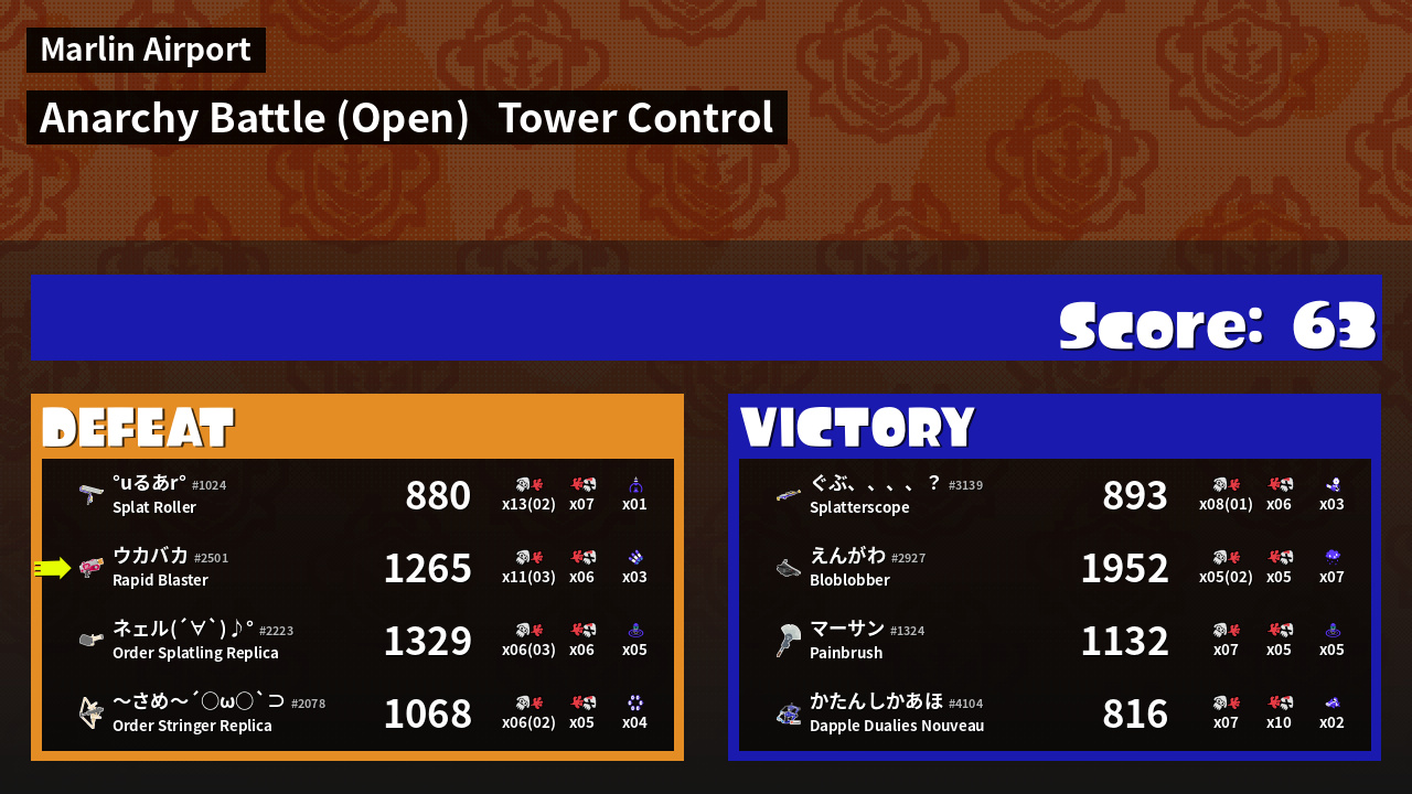 | Mode | Tower Control - Anarchy Battle (Open) | ||