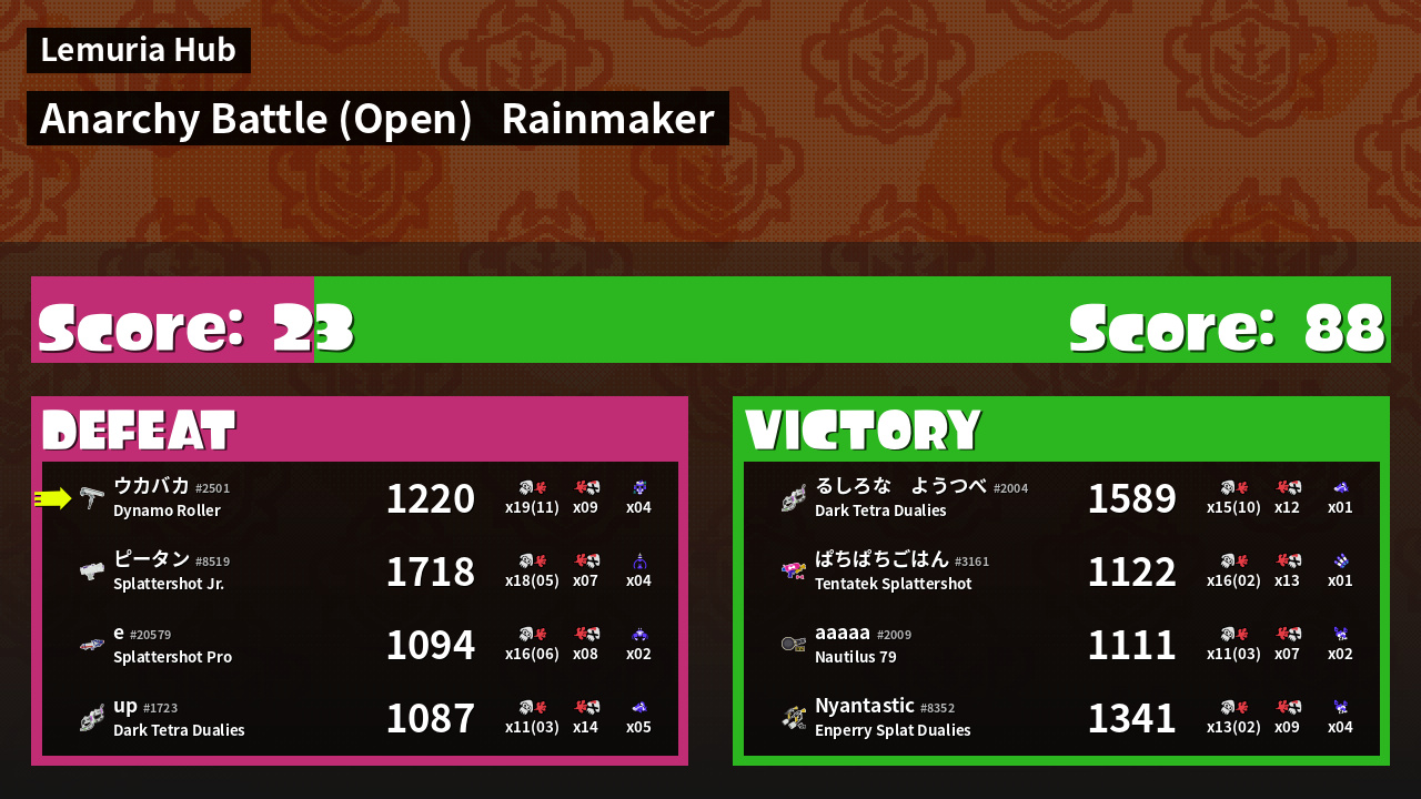 | Mode | Rainmaker - Anarchy Battle (Open) | ||