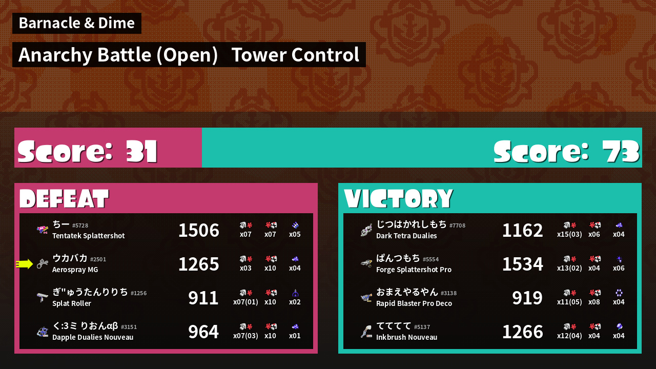 | Mode | Tower Control - Anarchy Battle (Open) | ||