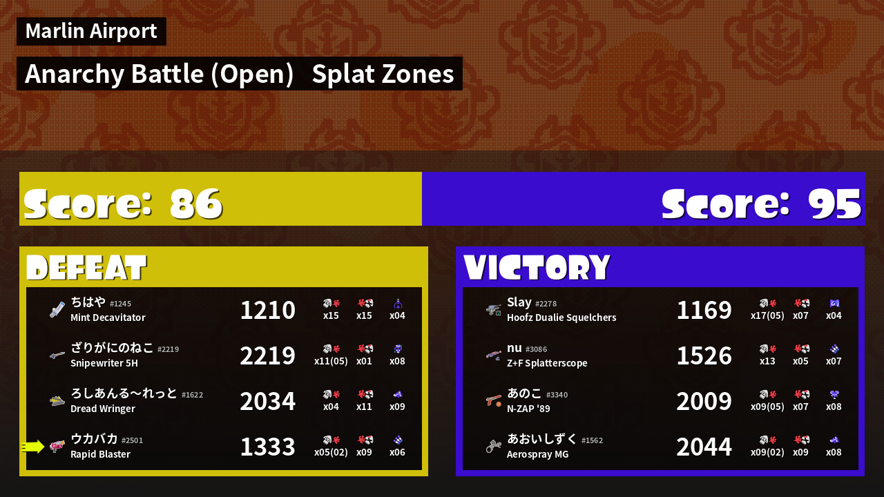 | Mode | Splat Zones - Anarchy Battle (Open) | ||