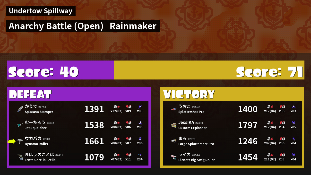 | Mode | Rainmaker - Anarchy Battle (Open) | ||