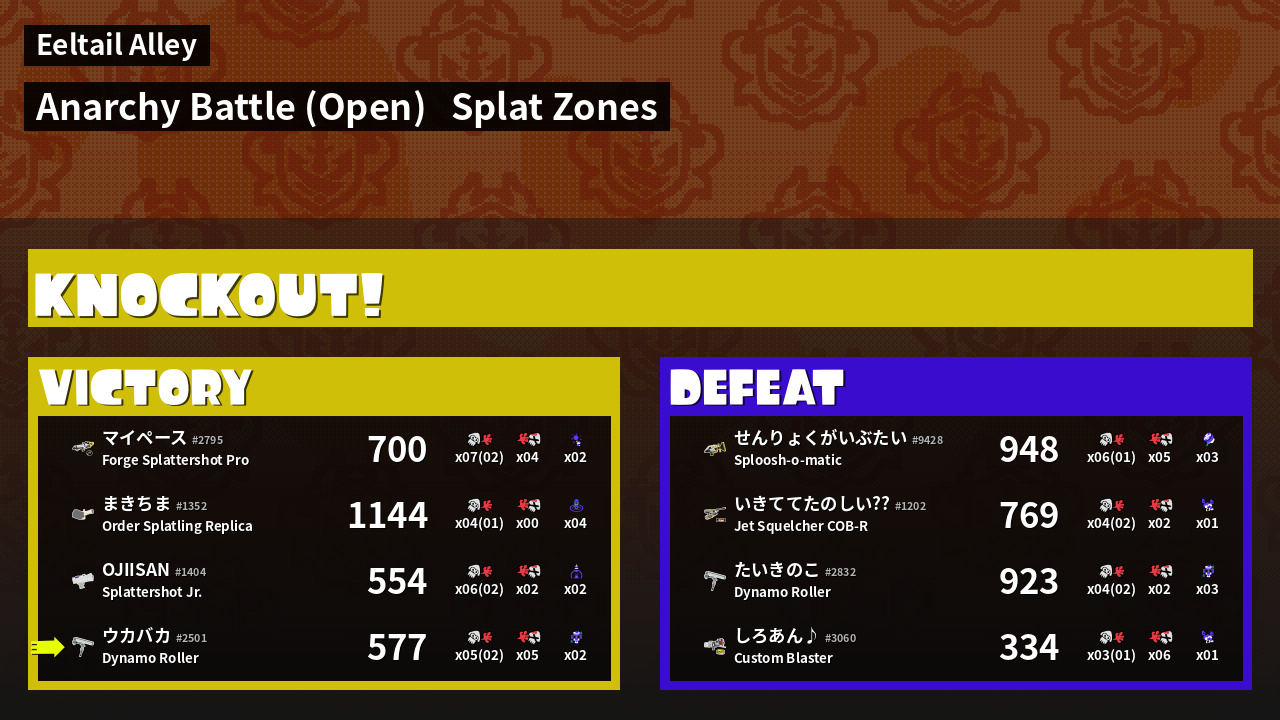 | Mode | Splat Zones - Anarchy Battle (Open) | ||