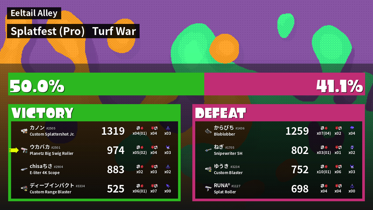 | Medals | #1 Splat Assister #1 Damage Taker #1 Ink Consumer | ||