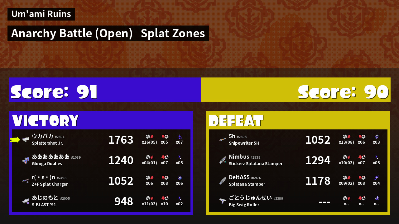 | Mode | Splat Zones - Anarchy Battle (Open) | ||