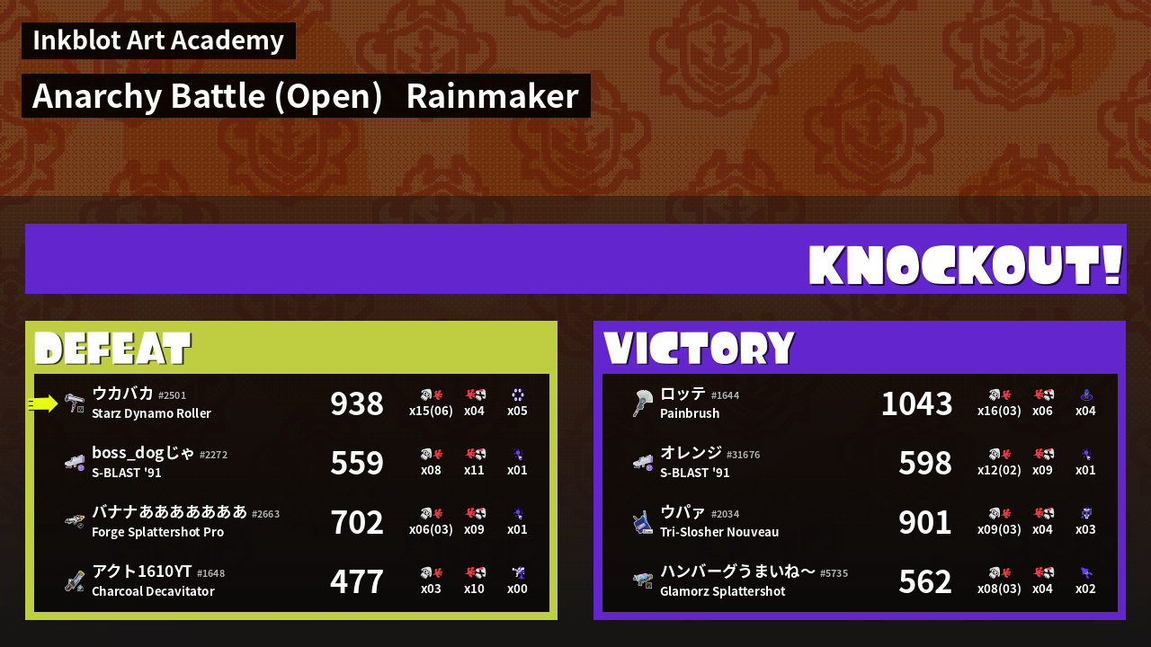 | Mode | Rainmaker - Anarchy Battle (Open) | ||