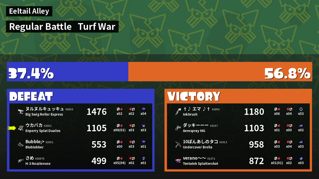 | Medals | #1 Overall Splatter #1 Popular Target #1 Enemy-Base Inker | ||