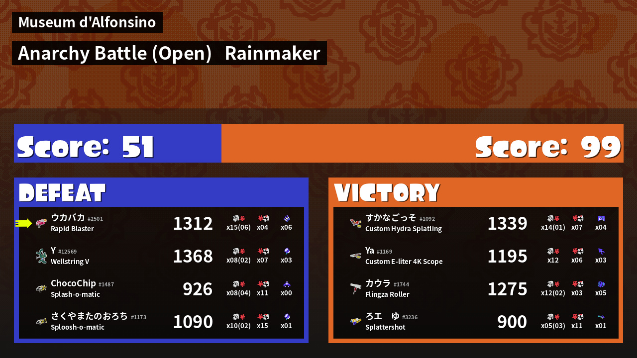 | Mode | Rainmaker - Anarchy Battle (Open) | ||