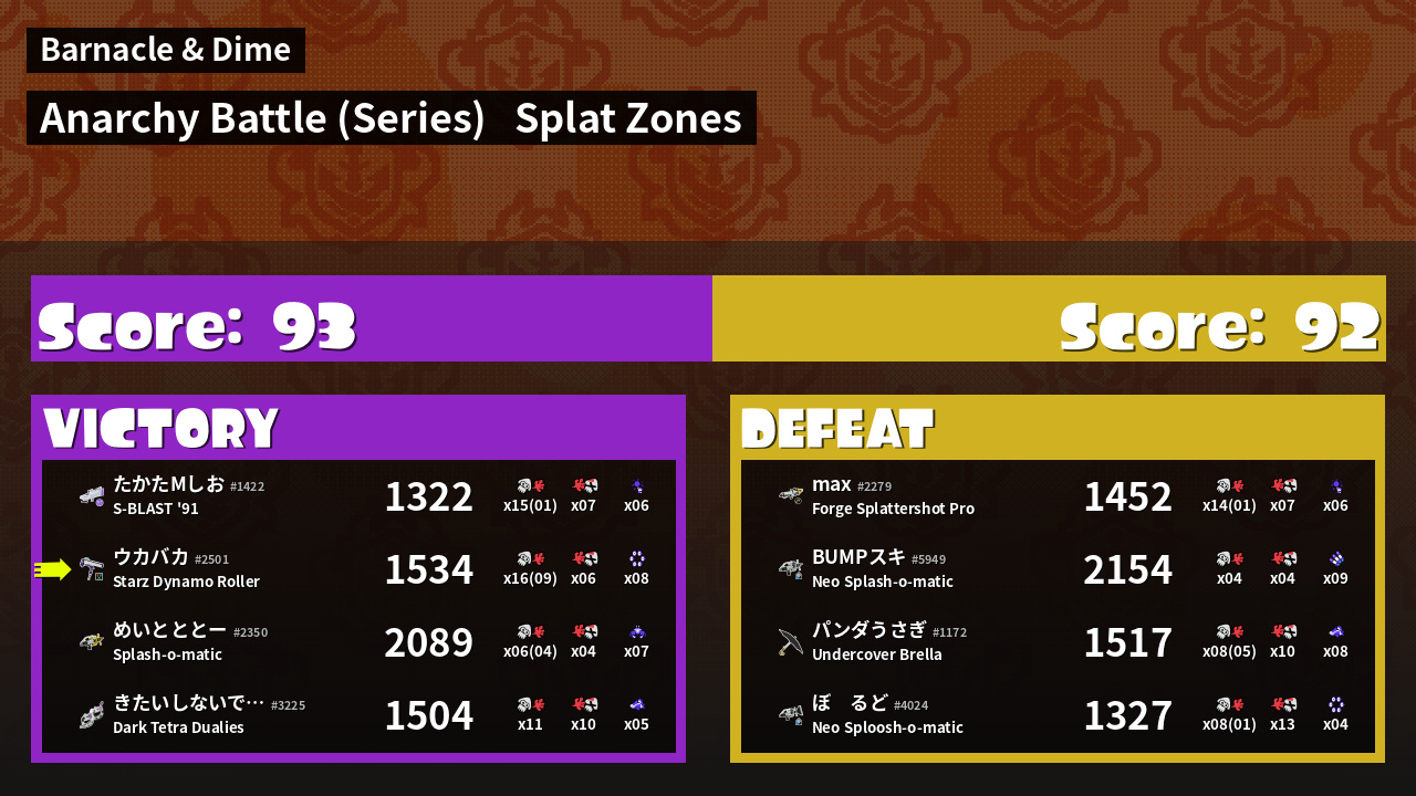 | Mode | Splat Zones - Anarchy Battle (Series) | ||
